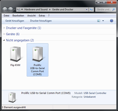 Nun wird in Systemsteuerung das Kabel angezeigt unter: